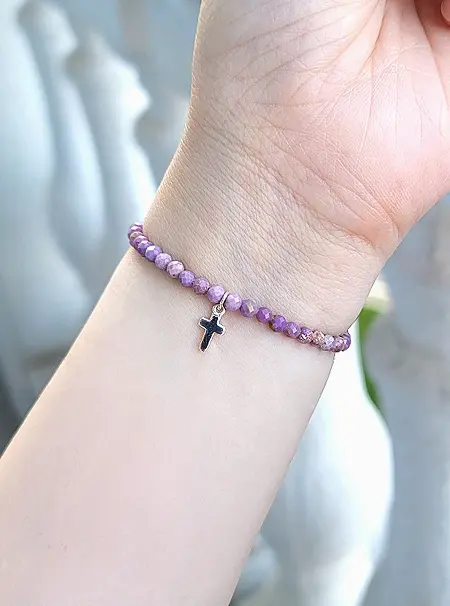 극복의 천연석 차로아이트 십자가팔찌