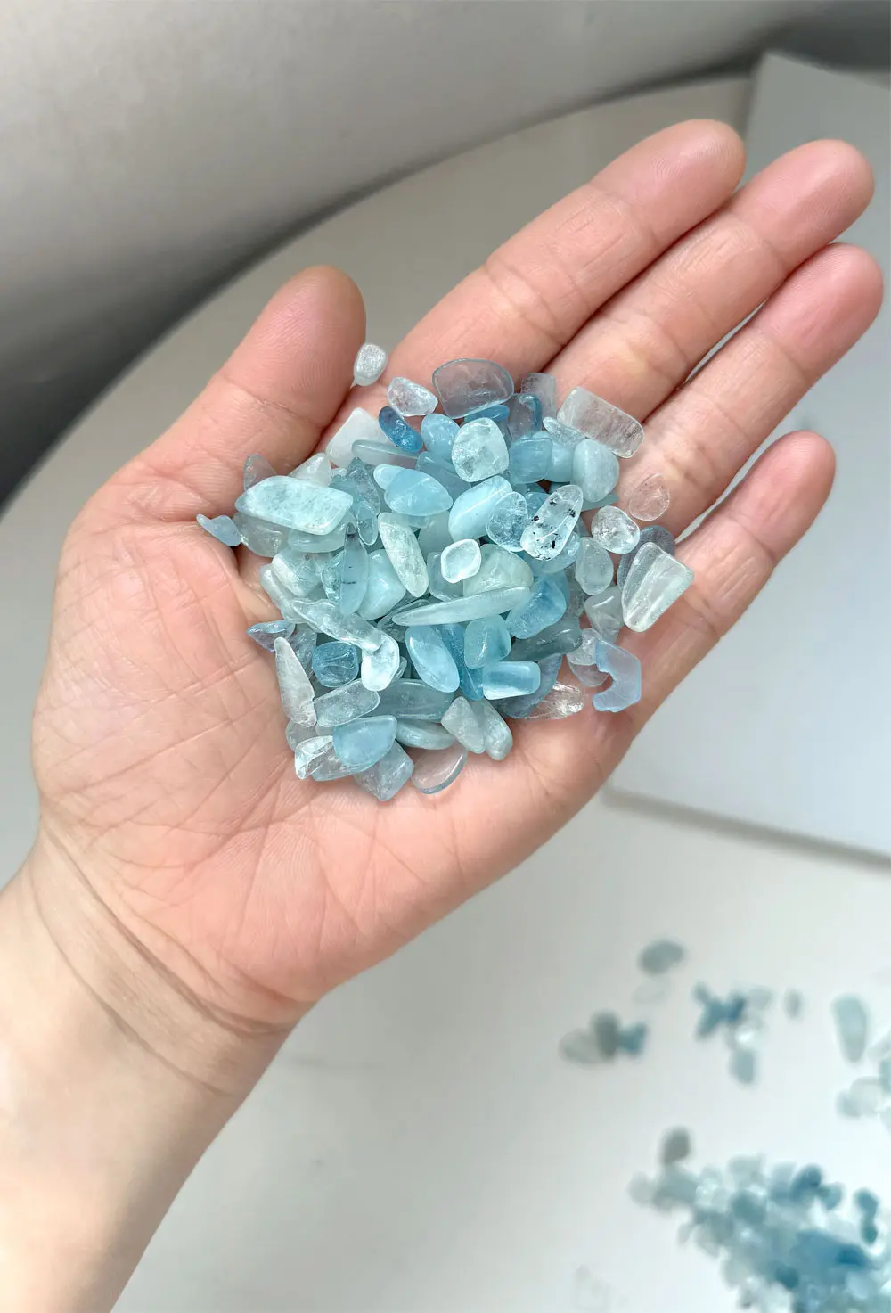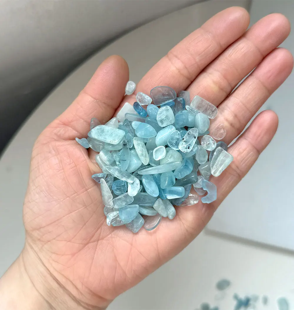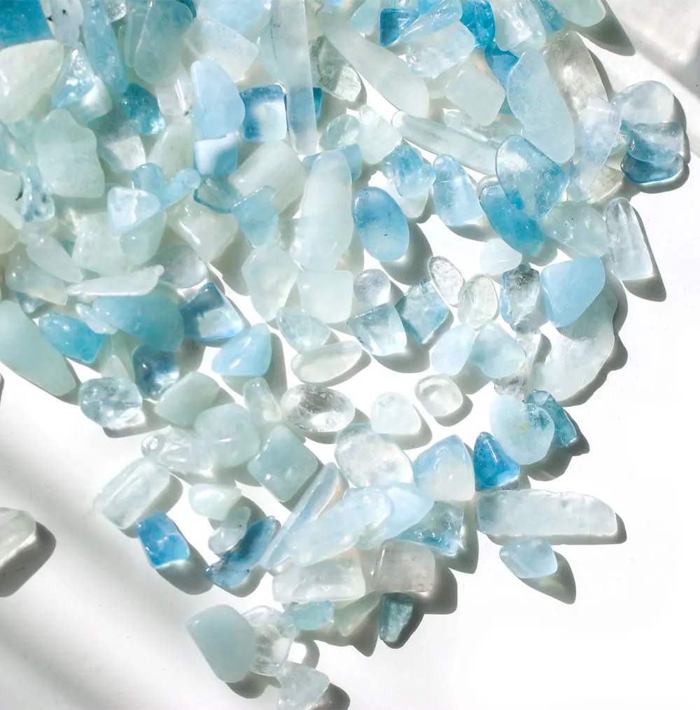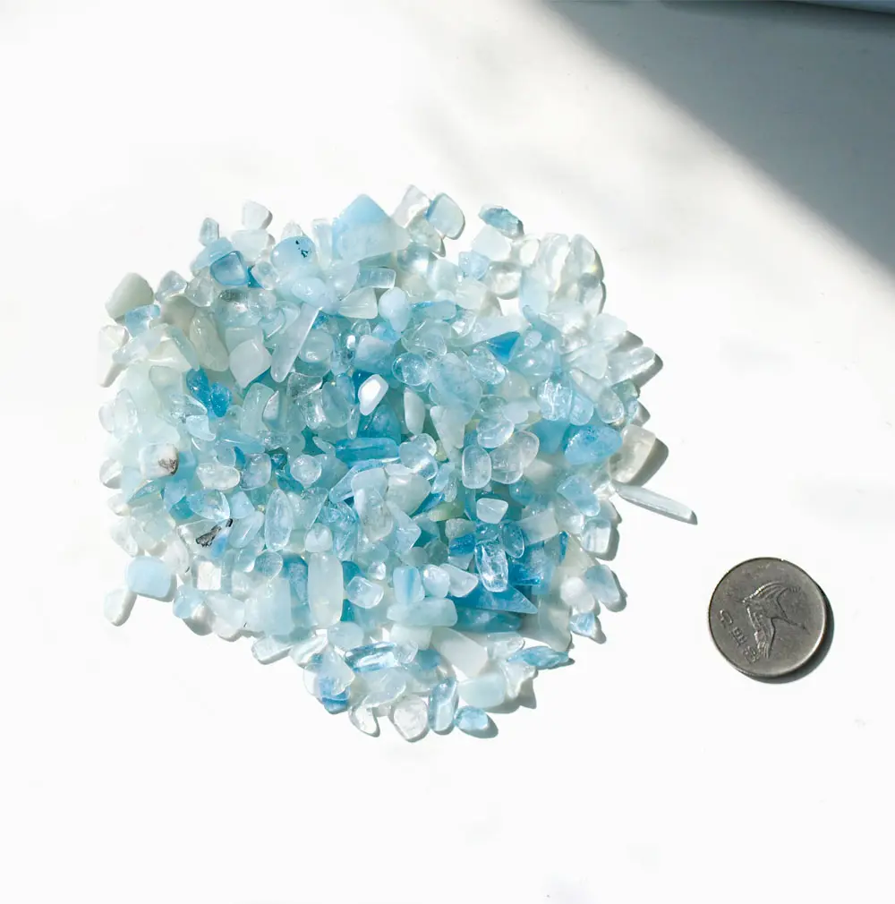 불규칙한 크기가 매력적인 천연 아쿠아마린 칩입니다.(구멍x)