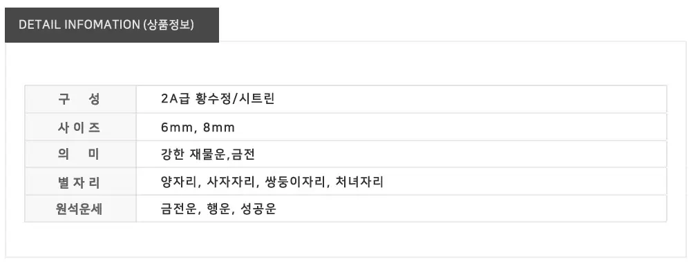 노란색의 천연석은 재물과 금전운이 붙으며,