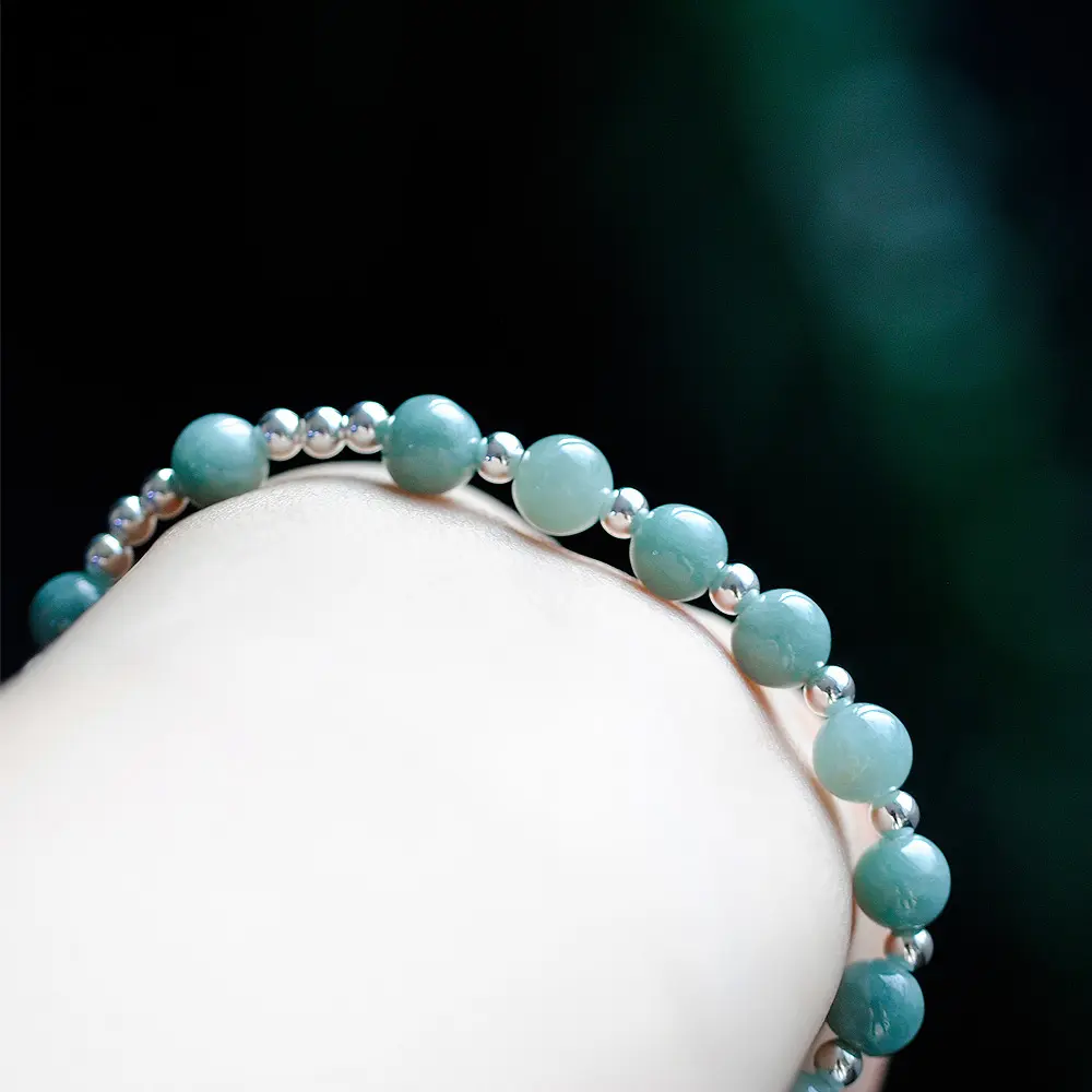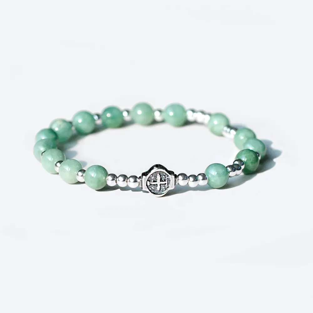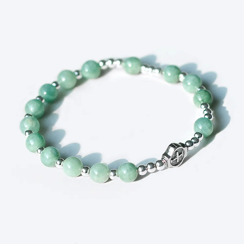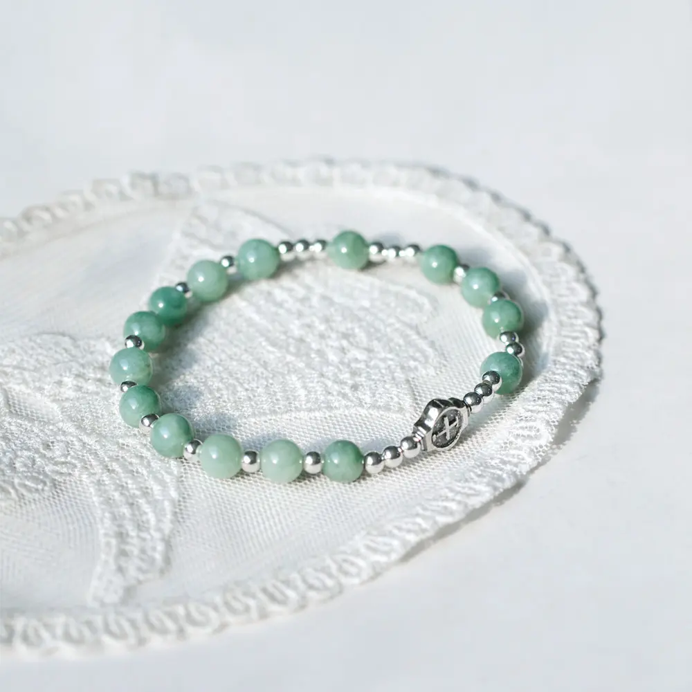 3A급의 옥으로 구성된 1단 묵주팔찌입니다.