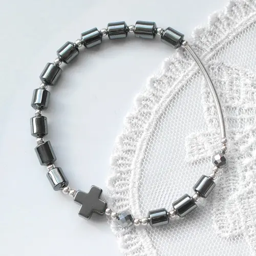 헤마타이트/실버 1단묵주팔찌