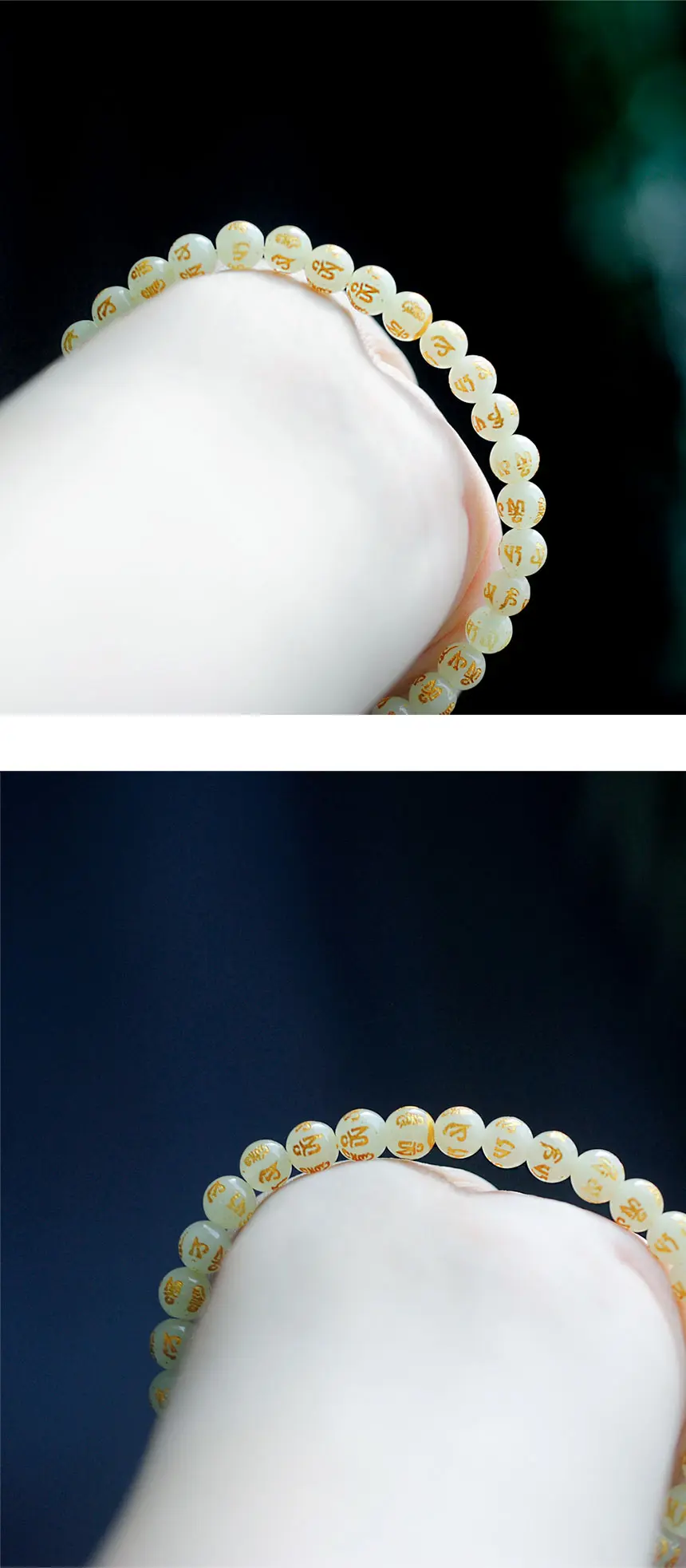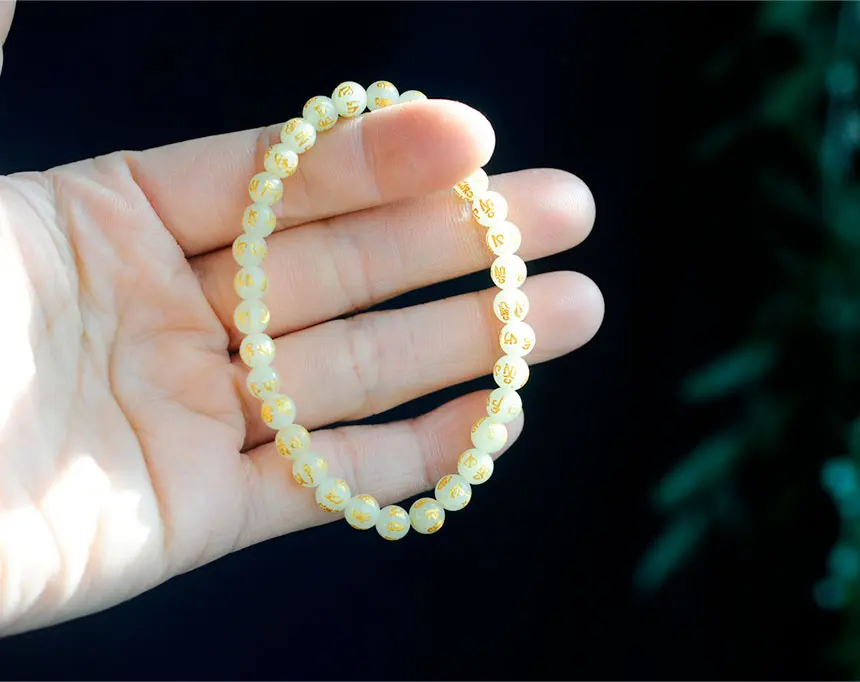소원성취진언이 새겨진 6mm 마노야광팔찌입니다.
